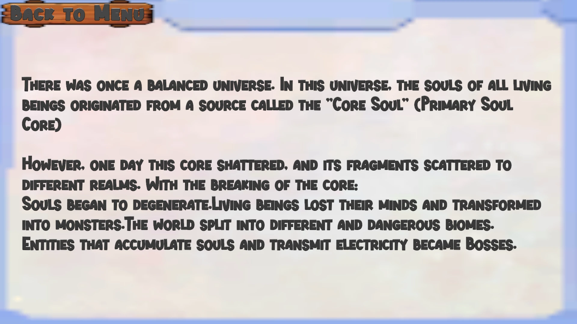Amacımız tüm düşmanları öldürmek, 3 patron düşmanı yenmek, tüm ruhları birleştirmek, deneyim kazanmak ve seviye atlamaktır. Toplamda 3 farklı bölge türü vardır ve her bölgede 4 farklı düşman türü bulunur. Düşmanlar iki farklı türde gelir: menzilli ve yakın dövüş.