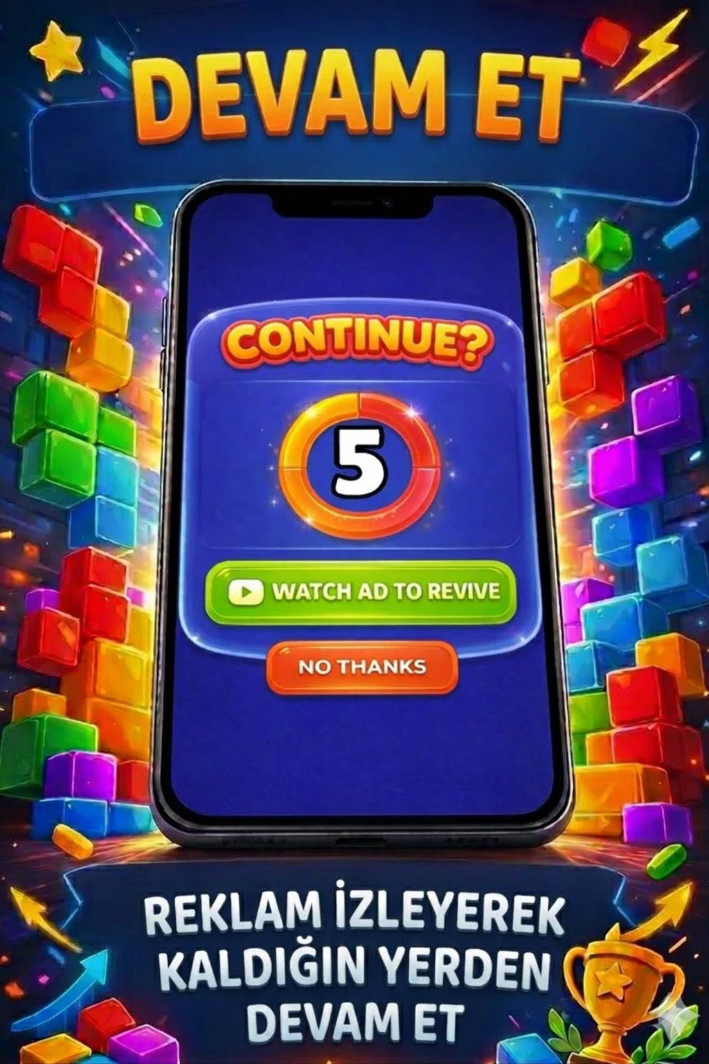 Klasik blok bulmaca oyunlarına yepyeni bir soluk getirmek istedim. Sadece şansa dayalı mekanikleri bir kenara bırakıp, oyuncunun yeteneğine göre şekillenen "Dinamik Zorluk Algoritması" ve heyecan verici bir "Fever Modu" geliştirdim. Tüm bu süreç bana bir oyunun baştan sona tasarlanması, optimize edilmesi ve global mağaza dinamikleri hakkında inanılmaz bir tecrübe kattı.