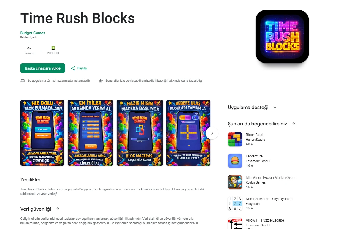21 yaşında bir Öğrenci olarak, kurucusu olduğum Budget Games stüdyosunun ilk mobil oyunu olan Time Rush Blocks an itibarıyla Google Play Store'da global olarak yayında! 🌍