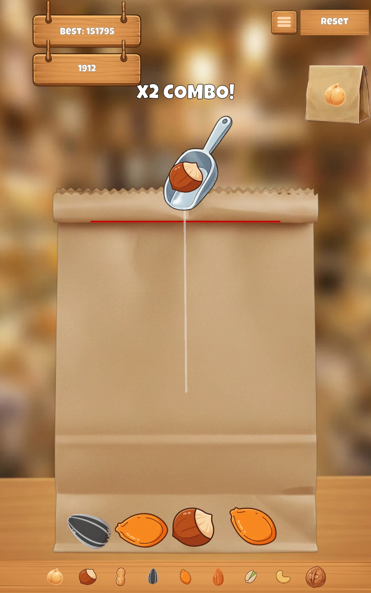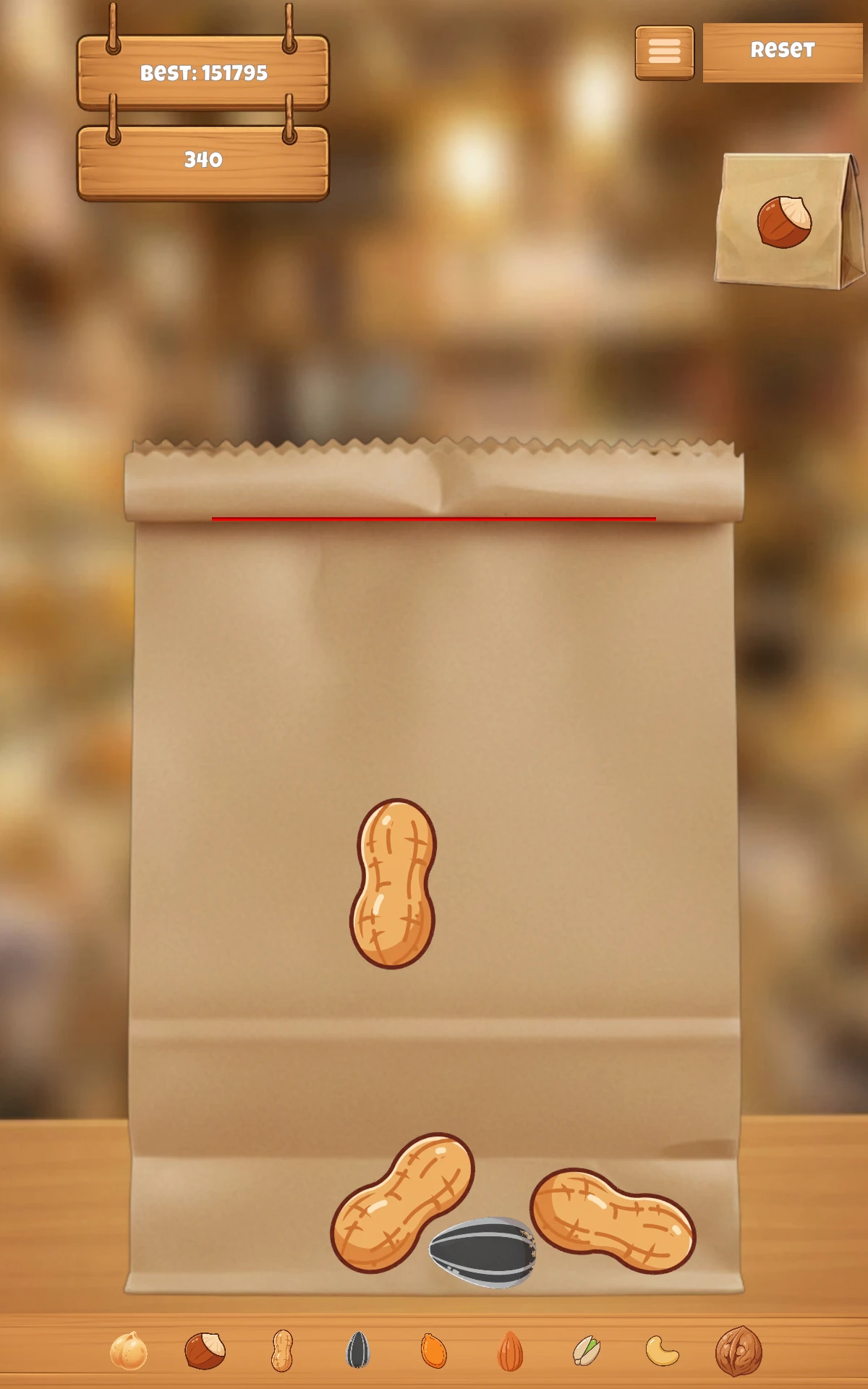 SnackStack Klasik tatlı suika merge game havasını kullanarak kuruyemiş temasıyla birleşen mobil birleştirme oyunudur.