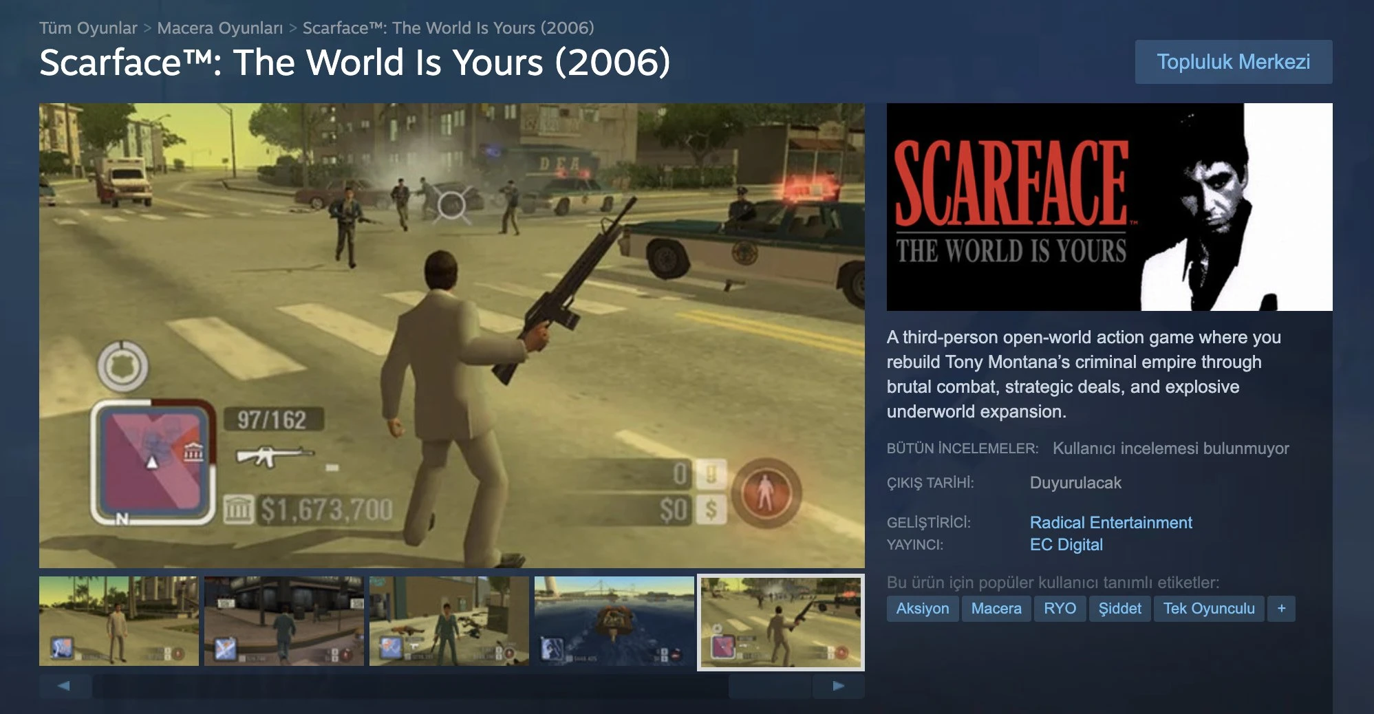 Yaklaşık 19 yıl önce piyasaya sürülen Scarface: The World Is Yours, Steam ve Epic Games'e geliyor.