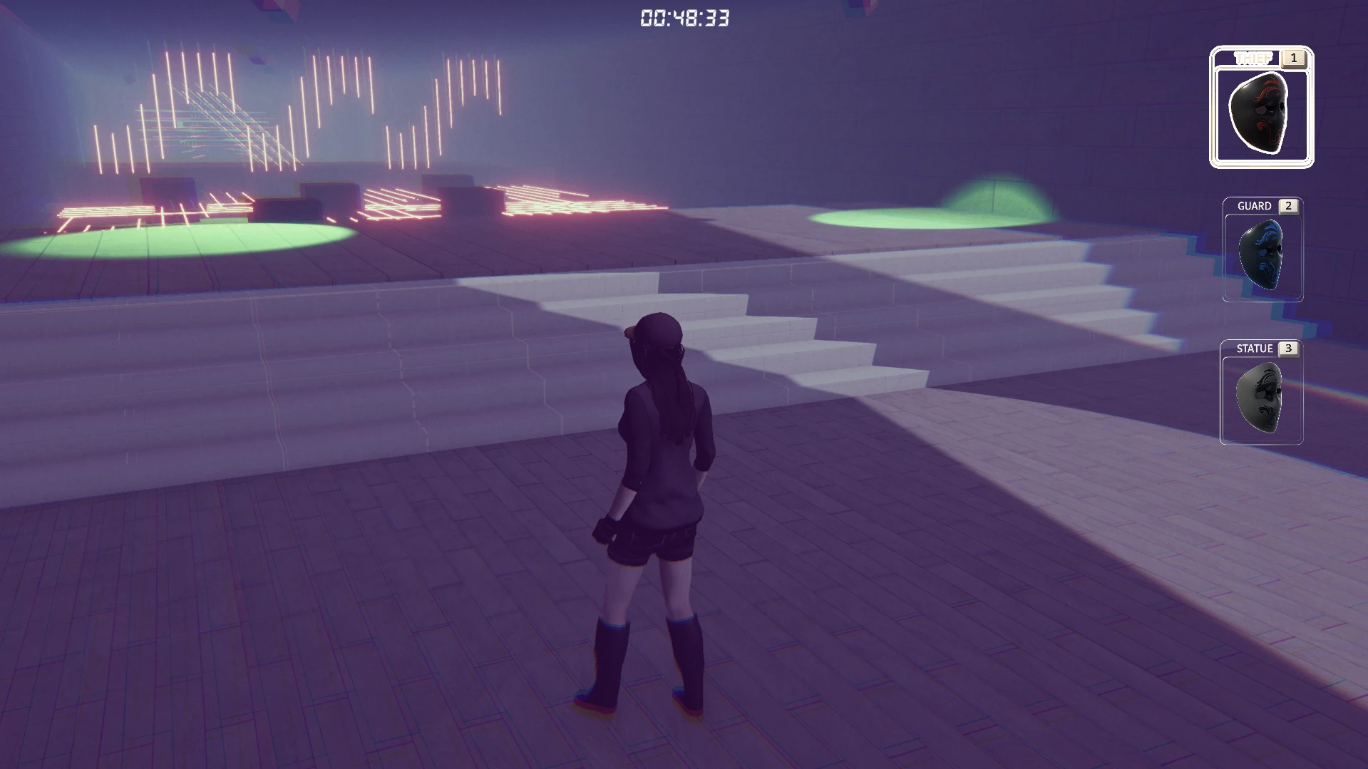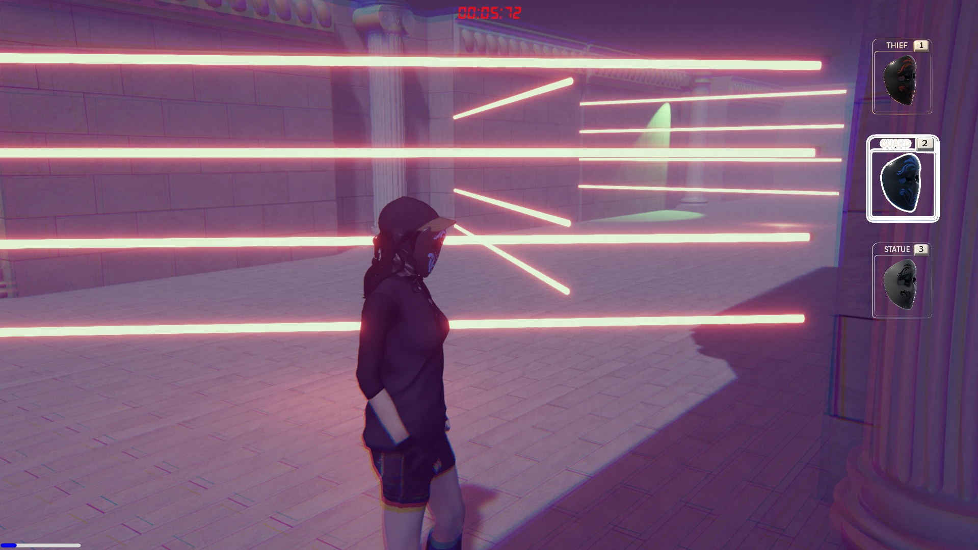 🎭 MASKELERİN GÜCÜ Müzenin ölümcül güvenlik sistemlerinin üstesinden gelmek için üç farklı kişiliğe anında geçiş yapmalısınız: