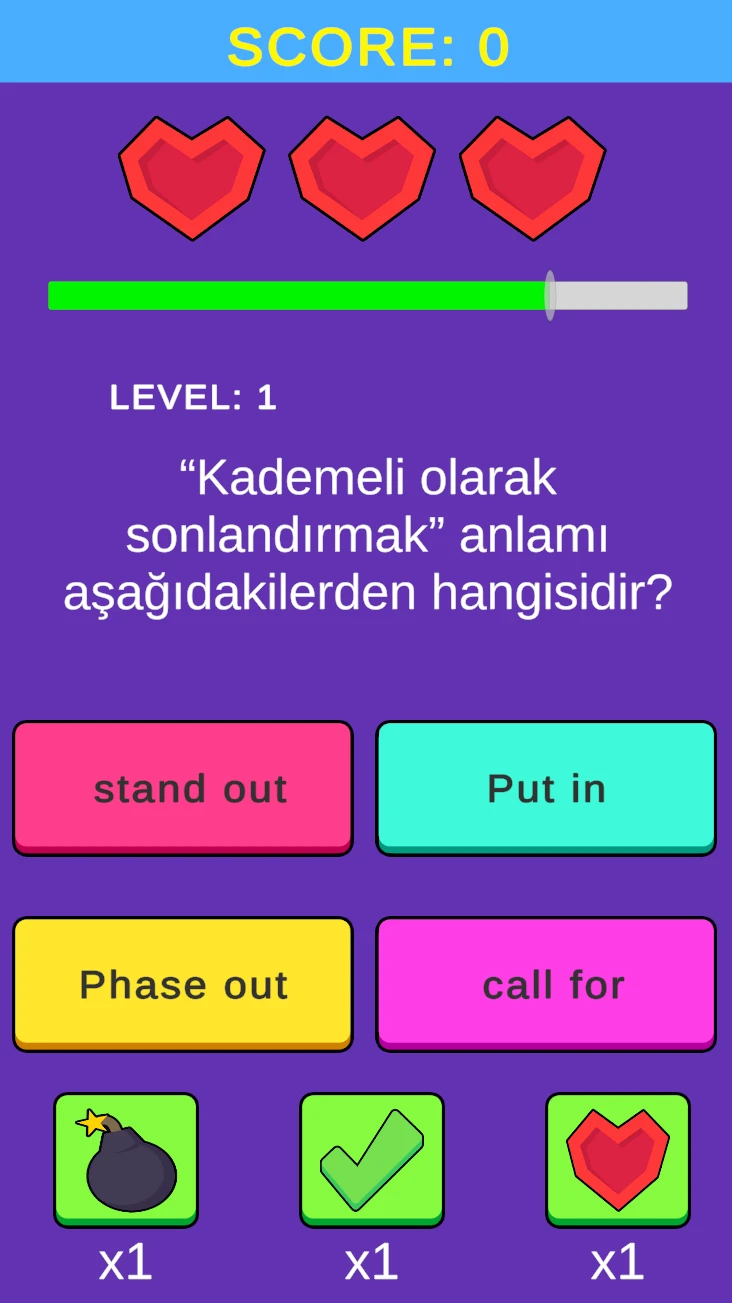 Word Hunter is a fast-paced, vibrant, and addictive English vocabulary quiz game designed to test your language skills while keeping you on the edge of your seat! Whether you're a language learner or a word master, dive into a world of letters where speed and accuracy are your best weapons.