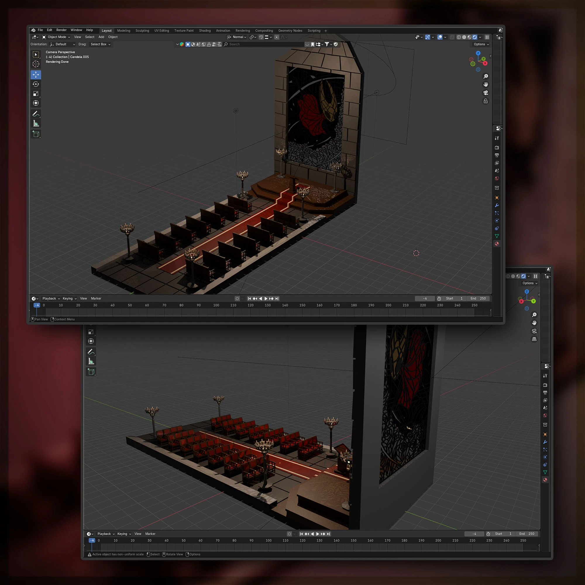 Amacım, bir kilise ortamı temalı çevre tasarımı üretmek. İlk 3D projemde neler yapabildiğimi göstermek için bank, kürsü, basit ışıklandırmalar gibi nesneler ekleyeceğim. Cam detayları en sona bıraktım.