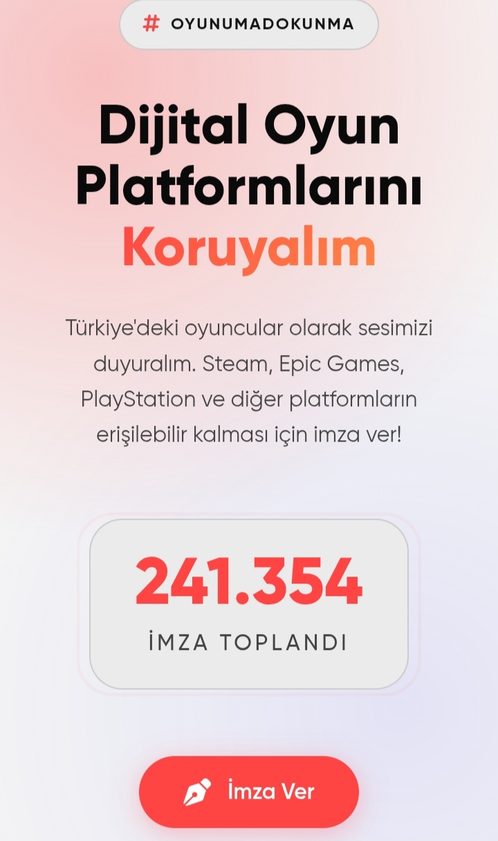 oha lan neredeyse 250 bin imza olmuş şimdi basit bir matematik hesabı yaparsak neredeyse türkiyenin 0.30 u bence baya iyi bu engel olayından vazgeçmedikleri sürece her gün bunu dile getiricem #oyunumadokunma #oyunayasakyok