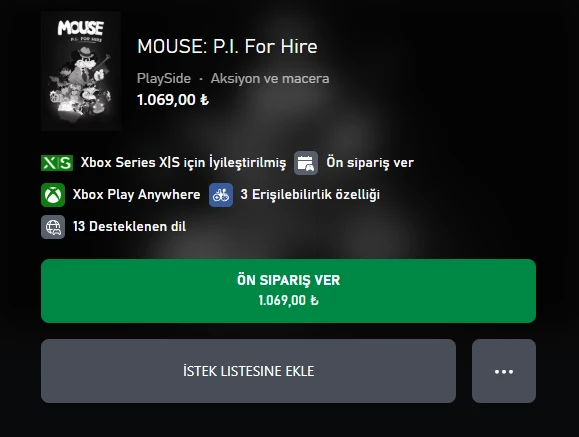 Steam'de en çok beklenen oyunlardan MOUSE: P.I. For Hire, Microsoft Store'da 85 TL'den satılıyor. Bu fiyat hatalı ve kısa süre içinde düzelecek. Almak isteyen hemen kapsın gençler