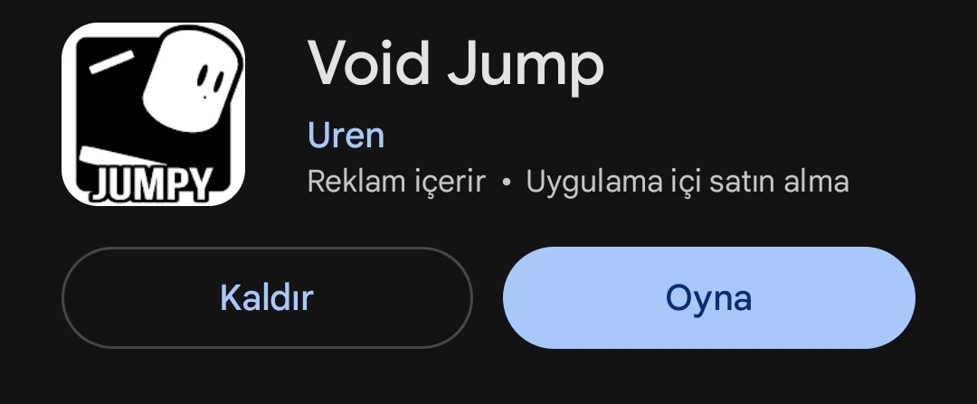 Basitin aksine -zor bir hyper casual- demek istemiyorum ama deneyimleyenler zorluğundan yakınıyor. Olay basit engeller düşüyor bizde bu engelleri platform olarak kullanarak düşmemeye çalışıyoruz, yüksek puan toplayarak dünya sıralamasına girmeyi hedefliyoruz. 4 adet movement butonu var sağ-sol yukarı-aşağı. Olay zaten burda bitiyor -aşağı- tuşunu kimse kullanmıyor. Bu herhangi bir fps oyunda mermi değiştirmemek gibi birşey. Ana konuya gelirsek Void Jump olmasaydı şuan bu gönderiyi atmıyor olurdum.