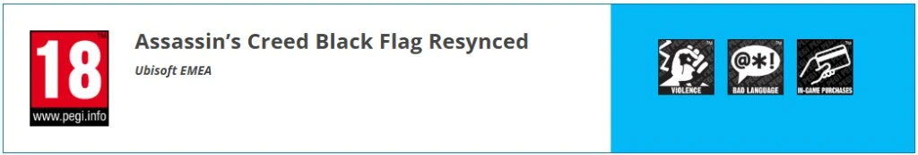 Ek olarak Assassin’s Creed Black Flag Resynced, PEGI tarafından +18 olarak derecelendirildi.