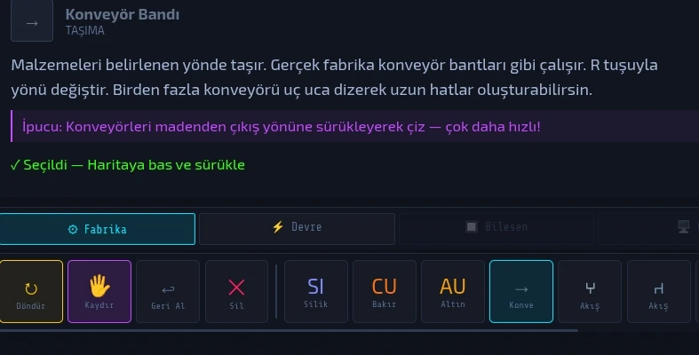 🛠 İnşa Et: Karmaşık konveyör ağları kur.
