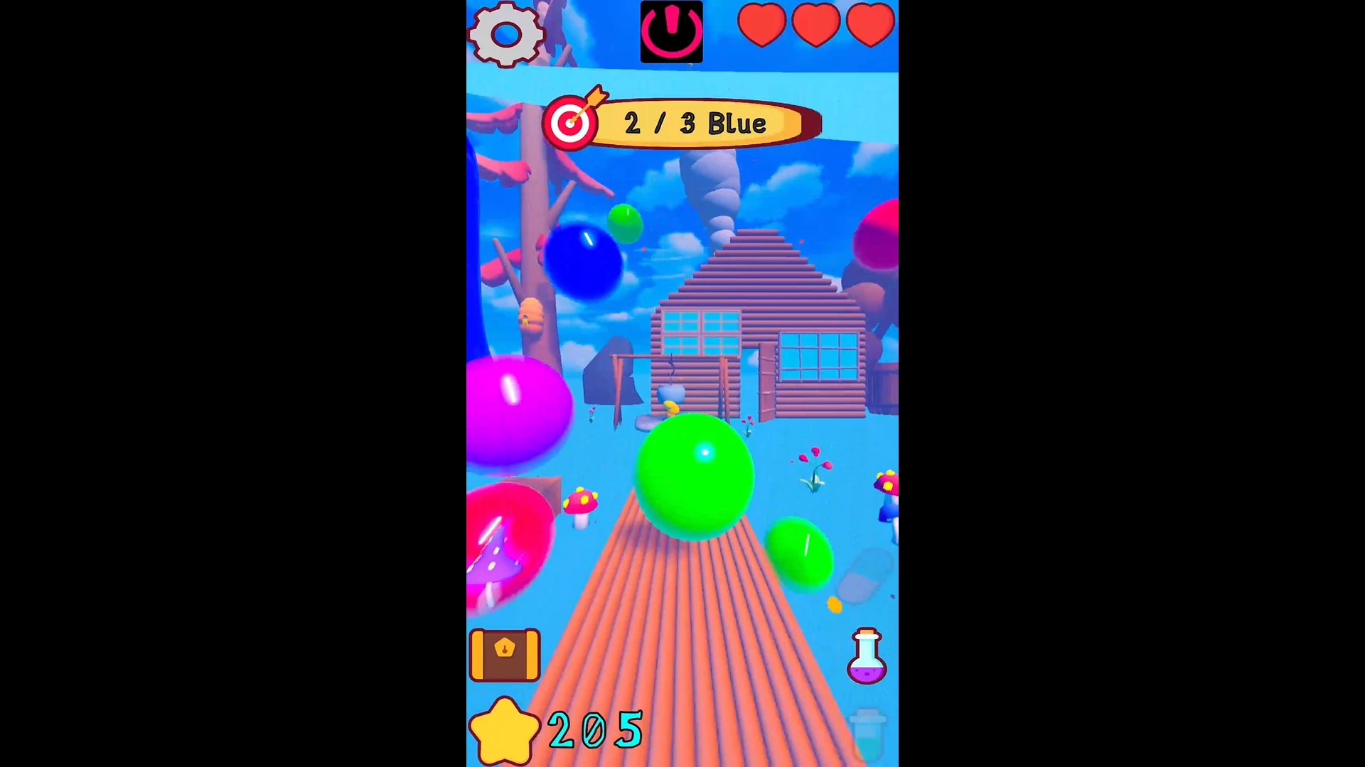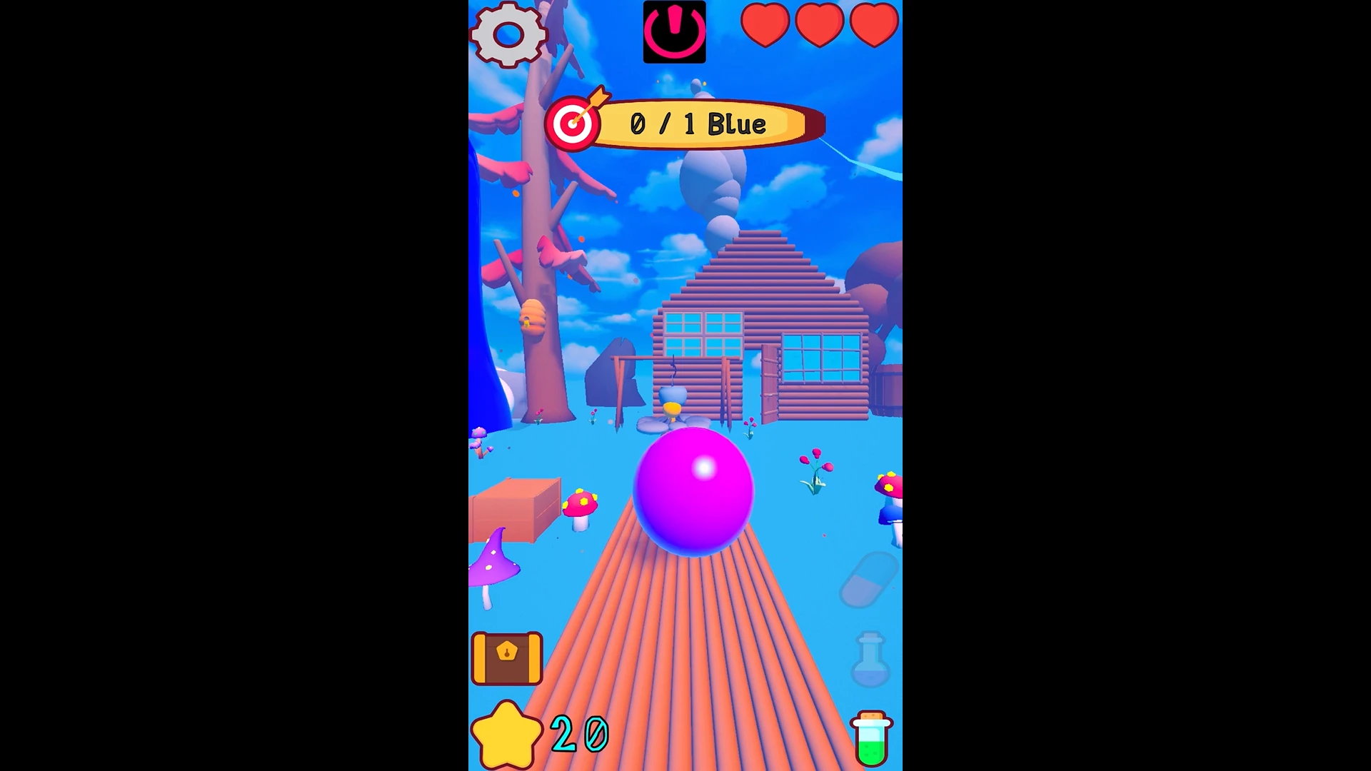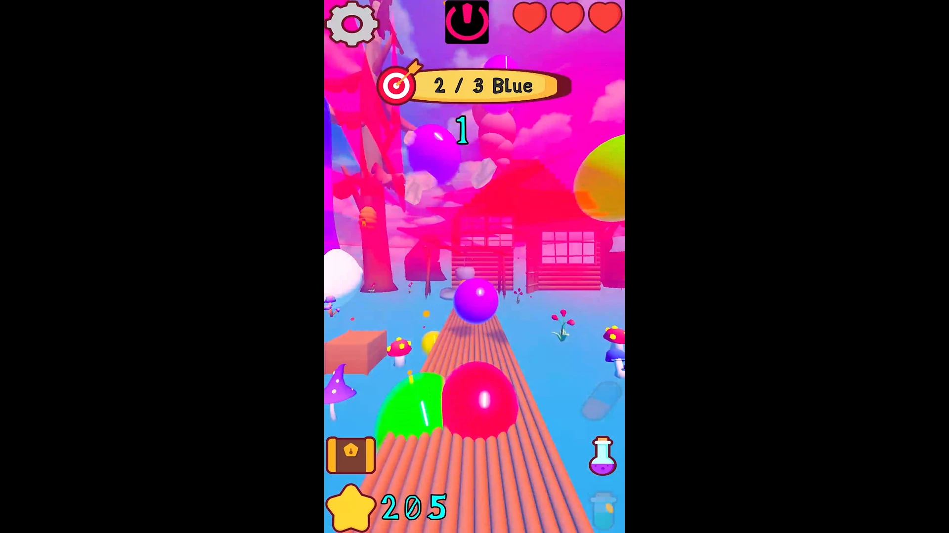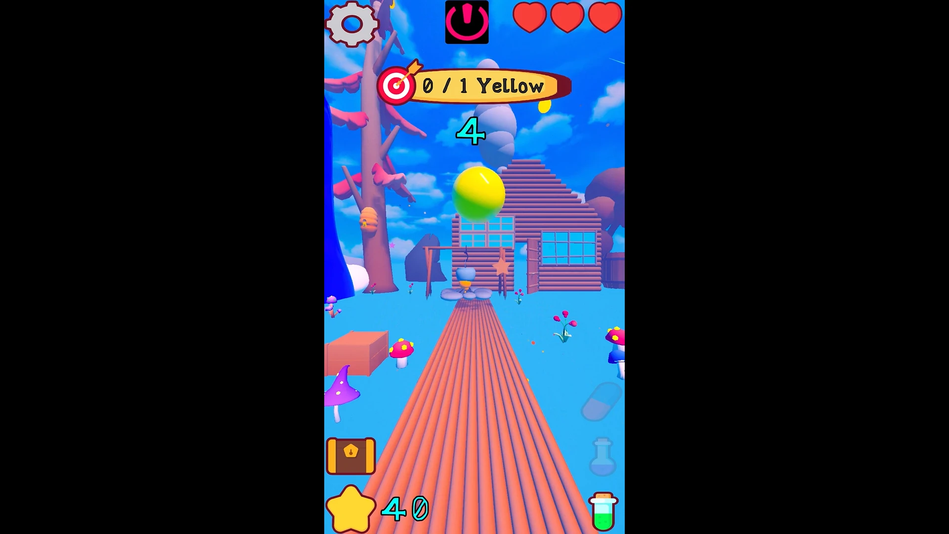 Toplamda 6 rengimiz, 3 sağlık göstergemiz, bir puan göstergemiz, envanterimiz ve 3 iksirimiz var.