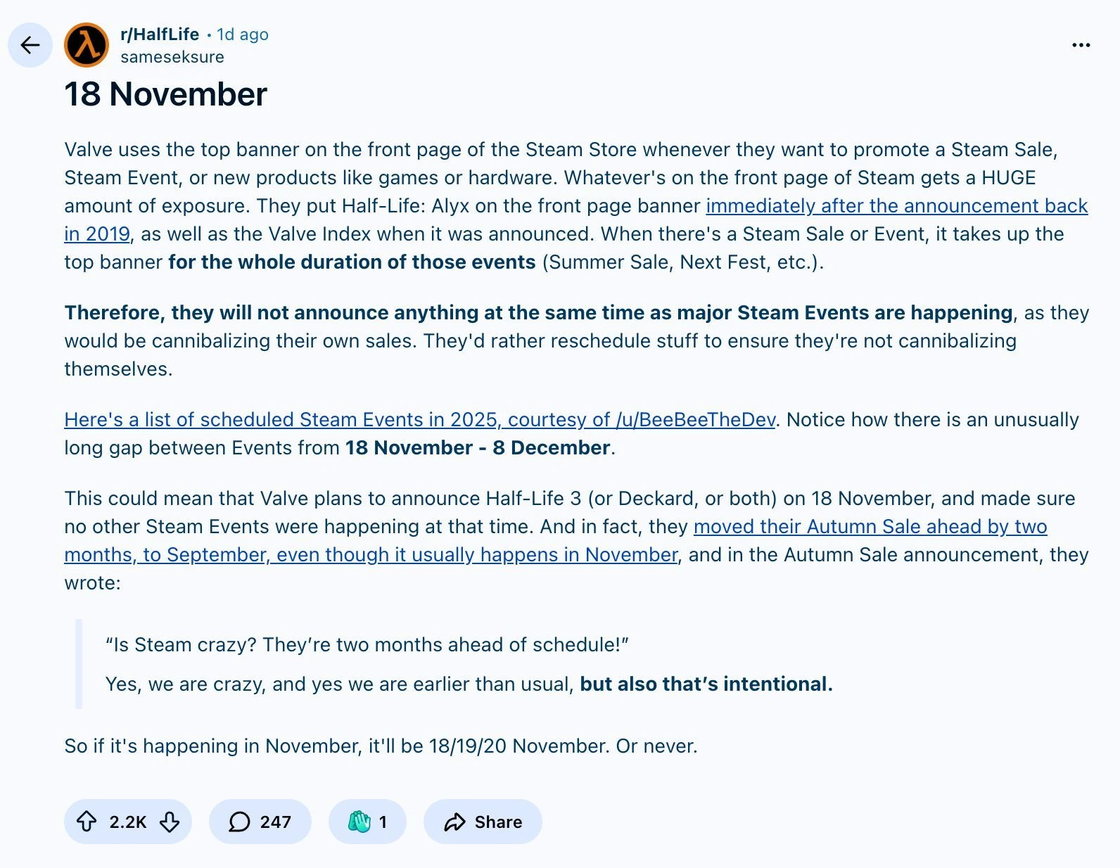 Ayrıca Valve, normalde kasımda yaptığı Sonbahar İndirimi’ni bu yıl eylüle çekti. Topluluğa göre bu, Half-Life 3 duyurusunun habercisi olabilir! 👀
